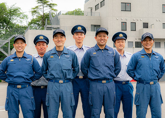 今回お話をお伺いした川崎市消防局のみなさん。前列左から宮前消防署:杉下さん、松本さん、清野さん、阪口さん。後列左から総務部施設装備課:鈴木さん、山岸さん、仲戸さん。